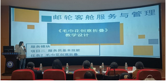 本次比赛秉承国赛赛制,现场抽取汇报人,现场抽取问题并回答等。7位教师从课程教学设计、课堂展示、实施报告三个方面选取其一进行了精彩汇报,展现了他们的专业素养和文化素养。