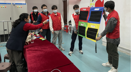 活动中,学生志愿者为社区居民讲解垃圾分类、节水节电等方面知识,开展垃圾分类模拟游戏。居民若投掷“垃圾”沙包到正确区域,可获得积分并兑换精美小礼品。居民在宣传横幅上签字,承诺今后将自觉遵守垃圾分类、节水节电等方面的环保注意事项。