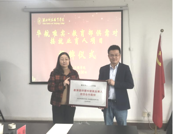 於红梅代表学院致欢迎辞。她对华航唯实公司一行人员的到来表示诚挚欢迎,并介绍了学院发展历程、专业布局以及产教融合校企合作方面的工作开展情况。她希望双方在现有政策以及前期合作的前提下,按照协议推进项目,积极探索供需对接模式,进一步拓宽渠道,在产教融合、人才培养、科研创新、学生实习就业等方面深入合作,让项目实施落地、生根、开花、结果。徐彬彬介绍了公司背景、产业布局、业务规模发展等情况,并表示公司高度重视产教融合,未来校企双方可以在定向人才培养、课程体系构建、师资队伍建设等方面进一步展开合作,资源共享、优势互补,力争在合作过程中取得丰硕成果。随后双方共同为“教育部供需对接就业育人项目”进行了揭牌,并就今年毕业生就业反馈和跟踪进行了友好交流。