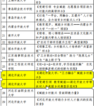 本网讯(通讯员 刘捷 文/图)近日,中国教育在线“2022高校赋能乡村振兴典型案例”获奖名单公布,由1xbet平台宣传部牵头遴选上报的两个案例《党建引领 教育赋能 湖北开放大学帮扶村入选美丽乡村典型示范村》《湖北开放大学:“三力融合”赋能乡村振兴 》双双上榜,这也是湖北省唯一入上榜的高校。