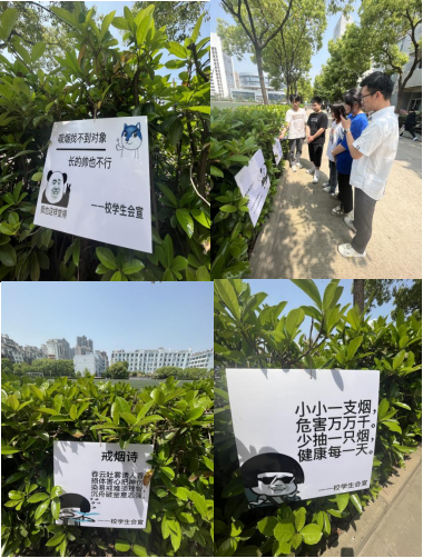 幽默漫画倡导无烟校园。从4月10日开始,学生干部制作的大批禁烟漫画和无烟校园倡议书放置在了学生上下课路上的醒目位置,通过生动、夸张的漫画手法,吸引更多的学生关注。有的学生表示:“吸烟的时候一转头看到‘吸烟找不到对象,长得帅也不行’‘燃烧的是香烟,消耗的是生命’等漫画宣传语,顿时感觉手里的烟不香了。”