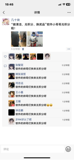 本网讯(通讯员 王维 许弘杰/文 孟广娟 李哲/图)“软件的帅哥们,快来换奖品啦!”“老师,我可不可以把积分攒着,最后换大奖?”3月15日至4月14日,学校举办“做清洁 兑积分 换奖品”活动,引起同学们的浓厚兴趣,同学们积极踊跃参加,做好寝室卫生,换到了洗衣液等生活日用品。