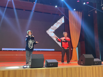 拉开本次艺术节序幕的是大学生艺术团精心准备的“凝心筑梦新时代,踔厉奋发向未来”文艺晚会。开场现舞队一曲热舞《the hydra》活力四射嗨翻全场,展现了青年的活力之美;主持队朗诵的《在中国大地上报到》《青春万岁》彰显了湖科青年不畏困难、团结奋斗的拼搏精神和奋进姿态;声乐队带来的歌曲《光年之外》《我的美丽》《红莓花儿开》旋律优美、声情并茂,引起了现场观众的共鸣,全场大合唱一首接着一首,手机闪光灯顿时汇成一片星海;现舞队的串烧舞蹈《炽》《rumor》别开生面,舞者尽显青春活力,令人耳目一新;由现场嘉宾音乐社代表和艺术团团长韩为儒一同带来的合唱《不会说谎的恰恰》《越来越不懂》欢快活泼,以高超的演唱技巧、动感的旋律唱响绚丽舞台,将晚会现场推向高潮;晚会最后在现舞队动感的舞姿和观众热烈的掌声中落下帷幕。