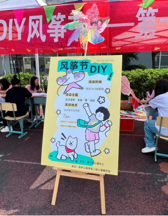活动分为“趣味答题”“DIY手绘风筝”“自由放飞风筝”三个环节,师生一同在校园展开一场春日约会。