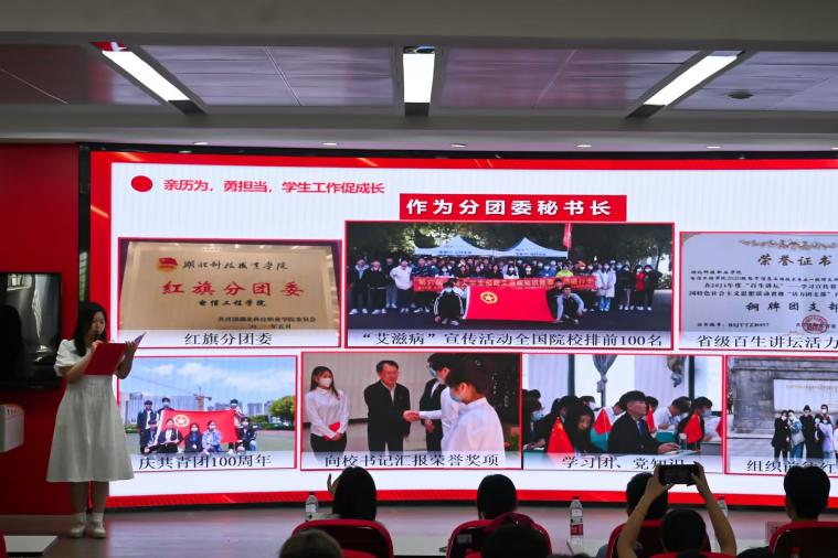 本网讯(通讯员 肖莉山 文/图)为深入贯彻落实习近平总书记关于青年工作的重要思想,进一步在广大青年群体中厚植爱党,爱国,爱社会主义的情怀,4月21日中午,校团委开展了2022年度“大学生自强之星”校级评选活动。学工部副部长王维以及各学院分团委书记参加活动并担任评委。校团委全体成员、各学院学生代表200余名师生参加了活动。