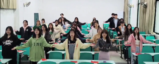学院团员青年以饱满的精神和昂扬的姿态演绎青春奋斗歌曲,歌颂祖国、催人奋进,《一起向未来》表达了同学们对生活的热爱与期盼,展现了昂扬向上的积极面貌。