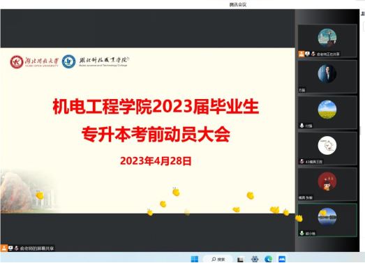 2023年专升本考试在即,4月28日,机电工程学院开展专升本考前动员大会,院长於红梅,各专业负责人以及全体辅导员参加,会议由副院长熊小艳主持。