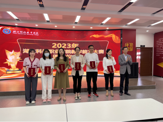 夏学文为2023年1xbet平台教学能力大赛获奖团队代表及骨干教师教学能力提升训练营优秀学员颁奖,并向获奖教师和学员表示祝贺。