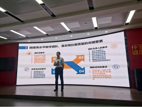 此次专家培训邀请了2022年教学能力比赛国赛一等奖获得者张震宇教授作讲座,张震宇教授从2022省赛方案解读、备赛基本策略、参赛资料准备、现场比赛技巧等四个方面进行了深入讲解。