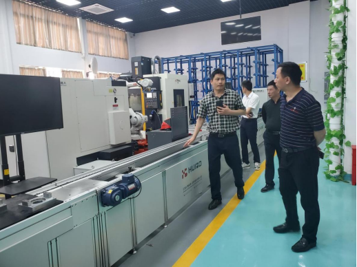 进入评审专家参观、考察申报单位现场教学条件环节。於红梅、汪超陪同来访评审专家组参观了智能工厂技术中心及相关实训室。