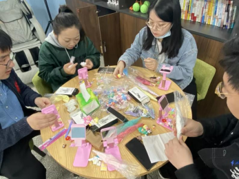 DIY手机支架,以劳育心。学院积极探索劳动教育与心理健康教育融合新路径,“点亮心生”心理健康辅导员工作室在学院师生中开展了手工DIY活动,心理高关怀学生、学生干部、辅导员们齐动手、齐参与,锻炼手眼脑协调配合、色彩搭配、手工创作等多层面能力的同时,也放松了身心。师生们妙手生花、其乐融融,劳动教育、心理健康教育与学生成长成才同向而行、同频共振。