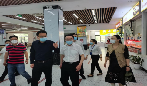 本网讯(通讯员 牛苏杭 文/图)5月18日上午,武汉市食品安全“两个责任”包保督导组来校督查食品安全工作。校党委常委李宜兵、后勤服务集团总经理祝玉平和副总经理韩静陪同。