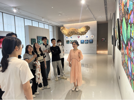 本网讯(通讯员 郭微微/文 谭芬 吴佩/图)为了做好美育工作,遵循美育特点,弘扬中华美育精神,6月7日上午,传媒艺术学院开展美育实践活动,组织学生前往联投中心浮生艺术馆参观“幻化的图像——王娟娟作品展”。