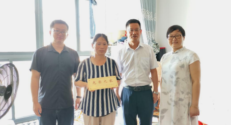 本网讯(通讯员 周良 文/图)为促进入伍学生安心参军,军属暖心,7月10日,机电工程学院党总支书记赵清泉,学工部黄海兰等一行4人前往入伍学生詹辉家中进行走访慰问,为入伍家属送去夏日清凉。机电工程学院学工办、学生征兵工作联络员等随行参加慰问活动