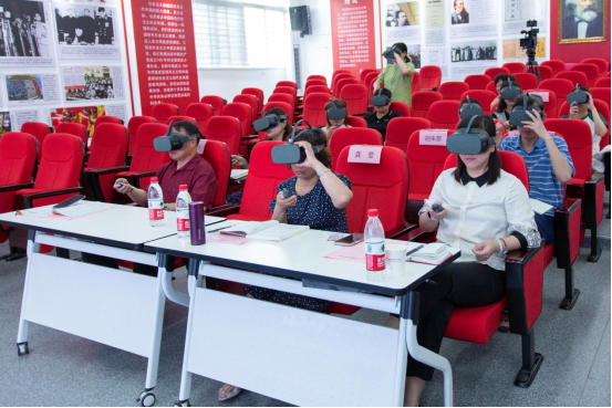 备课会由马克思主义学院副院长胡继慧主持,她向与会专家、教师介绍了学校思政课建设的基本情况,重点介绍了学校基于VR虚拟现实技术的思政课实训课堂,并带领大家在思政课体验式学习中心进行了观摩和体验。