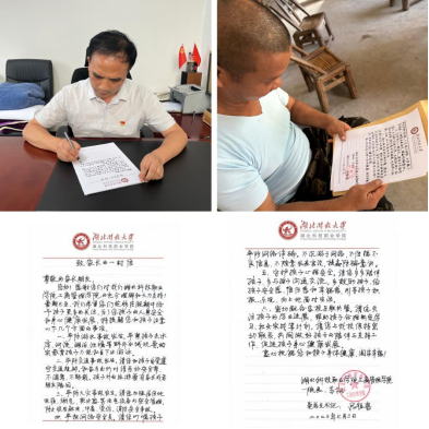 一封亲笔书信,传达浓浓关怀情。小小的信笺,这个夏天最美的礼物,洋溢着浓浓的温情;薄薄的纸张,为家访对象带来力量。放假前夕,为了传达学校和学院的关心、叮嘱假期各项安全事宜,学院领导精心准备,学院党总支书记吕恒喜亲自执笔,一笔一划为学生和家长送去了温情与假期关怀。书信主要包含防溺水、防火灾、心理健康、家校互联共管等六个方面的内容,一并对家长长久以来的支持表示了感谢。在家访时,学院辅导员们均将这封“亲笔信”带到了学生家里,送到了家长手中。家住襄阳市南漳县肖堰镇杜家沟村的小洁同学的父亲仔细阅读着信的内容,说“没想到还有给我们家长的信,这是我第一次收到,还是手写的,学校真用心,感谢学校对我们孩子的培养和对家长的关心。”