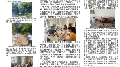 一个纪实视频,记录温馨互动瞬间。炎炎夏日长,漫漫家访路。家访路上,有的孩子家住6楼,没有电梯,辅导员们就气喘吁吁“更上一层楼”;有的孩子家住深山中,辅导员就先开车三小时,再下车步行一段小路,直到“柳暗花明又一村”。为了记录下这份家访风景路,辅导员们也拍摄了纪实视频;部分家长和学生也及时给予了视频回馈:“希望学校越来越好!”“感谢学校精心安排的教师家访,进一步拉近了家校间的距离,深入了解学生情况,也希望学校能为孩子们提供更多实践的机会,共同将孩子培养成为全面发展的人。”家校沟通与反馈互动,也让学院的育人工作更有深度。