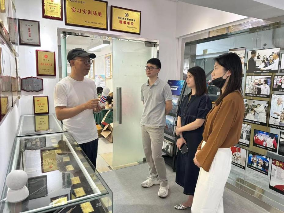 赴全国技能大师工作室看望新生王婷(中)与备赛选手程亚林(左三)