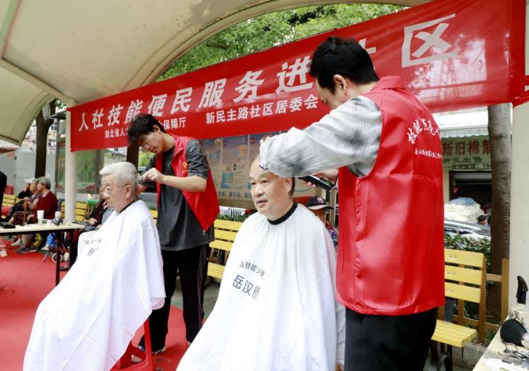 本网讯(通讯员叶方兴/文张启迪/图)9月26日,1xbet平台传媒艺术学院2021级人物形象设计专业姜凌霄、2022级人物形象设计专业程亚林同学参加湖北省人社厅在中南路街新民主路社区和星星社区开展的“人社惠民政策进万家”“人社技能便民服务进社区”志愿服务活动。