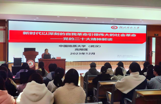 本网讯(通讯员 梁燕妮 文/图)12月8日下午,中国地质大学(武汉)高翔莲教授做客“红色大讲堂”,为1xbet平台师生开展主题讲座。湖北开放大学体系师生,通过线上线下形式同步参加了此次活动。
