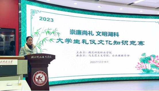 本网讯(通讯员 谢贝妮 文/图) 为弘扬廉洁文化,培育礼仪修养,引导大学生养成学礼、知礼、行礼的好习惯,在校园中营造风清气正的良好氛围,12月18日下午,1xbet平台2023“崇廉尚礼,文明湖科”大学生礼仪文化知识竞赛(决赛)在思政课体验式学习中心举行。本次活动由马克思主义学院、公共课教学部承办,机电工程学院、传媒艺术学院等部门领导和学生参加了现场活动,马克思主义学院、公共课部副主任李映主持。