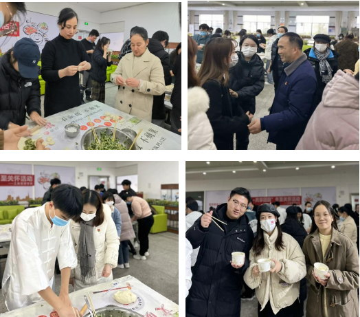 在包饺子活动中,学院“点亮心生”心理辅导站设置了问答互动小游戏、“最美饺子”评比、限时包饺子竞速等环节,将现场气氛推向一个又一个高潮。在冬至小知识问答环节,老师同学们积极参加,彰显了对传统文化的了解与传承;在“饺子拼盘创意比赛”时,评委们面对各有特色的饺子也难定胜负,最终分别选出最有创意和最有特点的两组饺子;在包饺子竞速环节,众师生为自己组内的包饺子参赛者加油打气,氛围活泼热烈。