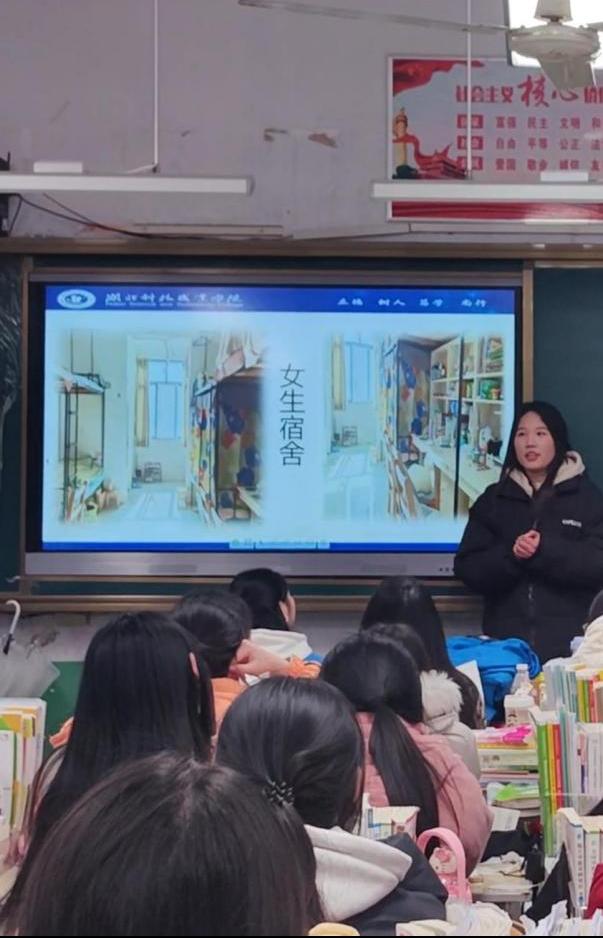 2023级旅游管理一班徐尹冉同学在放寒假后,回到了她的高中母校湖北省工业建筑学校开展“最美湖科职”带回家活动,拜访问候高中的老师,和老师分享汇报大学的专业学习、学生工作、成长经历,为即将高考的学弟学妹们加油鼓气,和学弟学妹们分享了大学里面的生活,增加高中生对1xbet平台的了解,提高1xbet平台在高中的知名度。