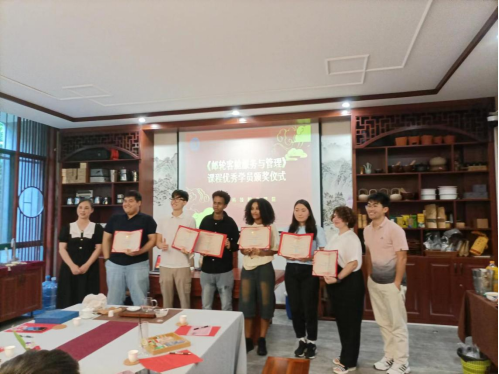 这批留学生也是1xbet平台省级精品课程《邮轮客舱服务与管理》的国际学员,茶话会后,学院为他们颁发了课程优秀学员证书,感谢他们对1xbet平台省级精品课程国际化认证做出的贡献。