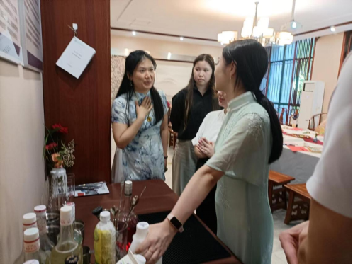 陈蔚讲解了茶调饮制作方法后,留学生们参与其中,并在酒管专业优秀毕业生张清海国家级技能大师工作室优秀茶艺师毛琴的指导下开始上手调配,乐在其中,用各自的母语写下对本次茶文化体验课程的感受以及对中国茶文化的感悟。