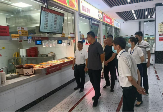 督导组实地查看了食堂档口的环境卫生、餐具消毒、菜品留样等工作开展情况,现场听取了餐饮负责人关于“日管控、周排查、月调度”工作机制运行情况,对学校食堂干净、整洁的就餐环境和落实食品安全管理规范工作给予了充分肯定,并对如何落实食品安全“两个责任”提出了具体的指导意见。