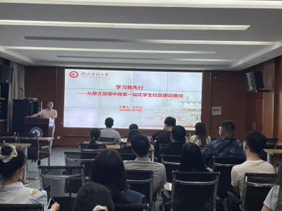 传媒艺术学院辅导员叶方兴以“学习我先行——从原文原理中探索一站式学生社区建设路径”为主题,从学习思政教育相关重要文件出发,延伸至学习一站式学生社区相关重要文件,分享了他从读原文原理原文件中受启发做工作研究的特色经验和学院一站式学生社区建设的特色思路。