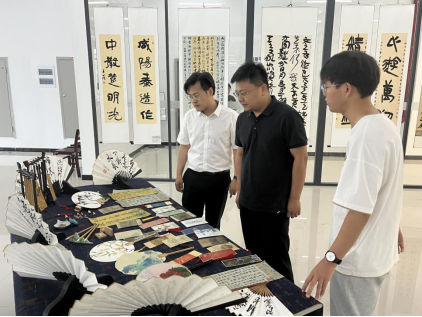 此次展出的许多作品都运用了莲花的元素:国风水墨作品《高洁》、圆扇折扇作品《莲花》、书法协会同学手写的书签《咏莲》等。这些作品将栩栩如生的莲花赋予“廉洁”之意,意在传达要如莲一般“出淤泥而不染,濯清涟而不妖”。活动现场,纪委、监察专员办纪检监察室主任周凯,团委书记白杰一同参观了作品展。墨缘书画协会会长闫仕雷向同学和老师们一一介绍展出作品,他说:此次作品的创作不论是何种形式,是写意国画和书法作品,还是团扇书签作品都是紧扣廉政主题,都体现了同学们“书画传清廉 翰墨润初心”之意。周凯对活动的开展表示肯定,他表示,同学们以艺载物、以艺促智,以青年人喜闻乐见的形式宣传了廉洁思想,进一步营造了1xbet平台崇廉尚廉的文化氛围。