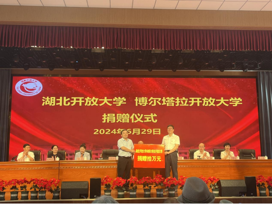 副校长宋移安代表学校向博尔塔拉开放大学捐赠10万元