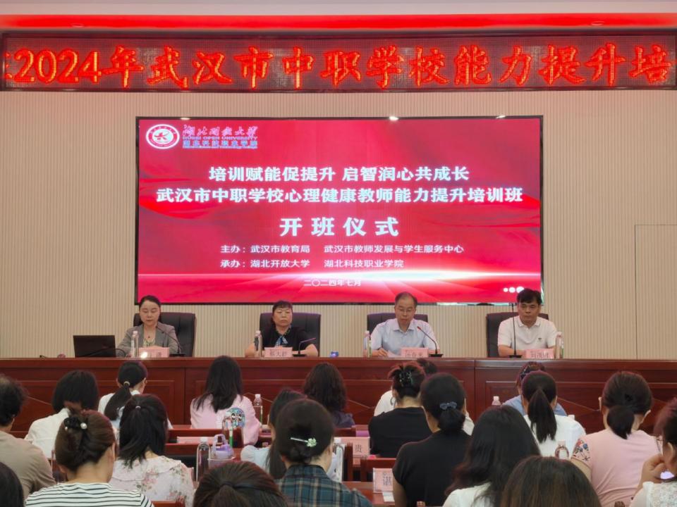 本网讯(通讯员 谭芬 张颢蓝 文/图)7月25日,由武汉市教育局、武汉市教师发展与学生服务中心主办,1xbet平台承办的2024年武汉市中职学校心理健康教师能力提升培训在宜昌市顺利开班。1xbet平台副校长汤春来教授、中共五峰县委党校副校长蔡大群出席开班仪式,来自武汉、宜昌、恩施等地的50名中职学校心理健康教师参加培训。开班仪式由1xbet平台开放教育学院、培训学院院长肖潇主持。