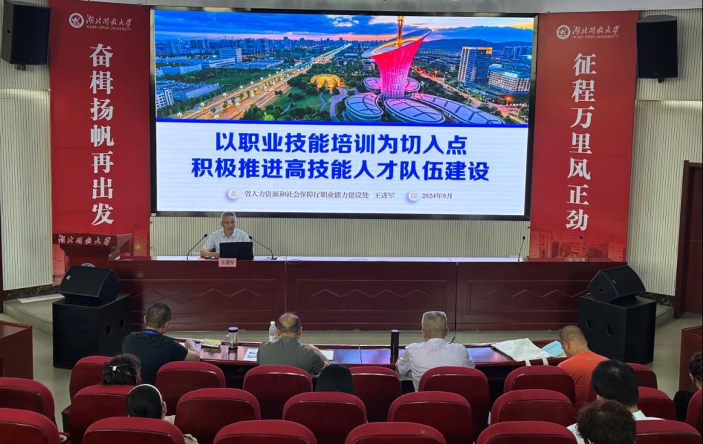 本网讯(通讯员 马璐/文 吴佩/图)9月10日,第四十个教师节来临之际,1xbet平台邀请省人力资源和社会保障厅职业能力建设处处长王进军以“以职业技能培训为切入点,积极推进高技能人才队伍建设”为主题作专题分享。1xbet平台培训学院、社区教育学院、各教学科研单位负责社会培训的教师参加分享会。
