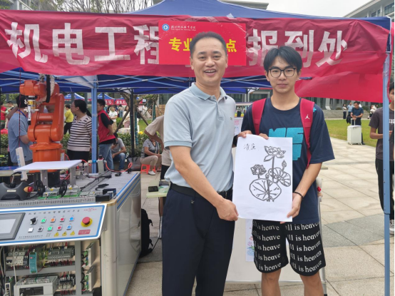 “哇,这是我们将来上课的实训设备吗”“快看,它写了‘欢迎新同学’,还会画画,我们的专业太棒了”迎新现场,传来新生和家长们的一声声惊呼。今年迎新工作,学院特别设置了工业机器人展示区,为新生和家长们现场展示了工业机器人作业过程,让每一位新生都能感受到学校无处不在的科技创新氛围。