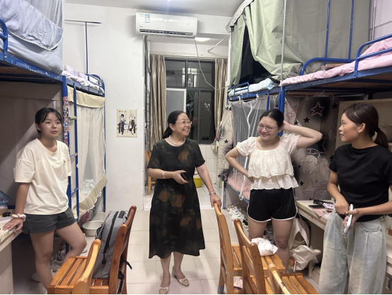 “家在哪儿呀?路上顺利吗?”“武汉的天气有些热,报到手续办好了吗?”学院领导班子和全体辅导员深入迎新报到现场,与新生及家长亲切交流,耐心了解他们的入校感受以及下一步的学习生活安排。12日晚,学院领导率学工办全体人员走进学生宿舍,给予学生学业、生活指导,关心学生对新环境的适应情况,帮助同学们尽快完成身份转变,翻开人生新篇章。