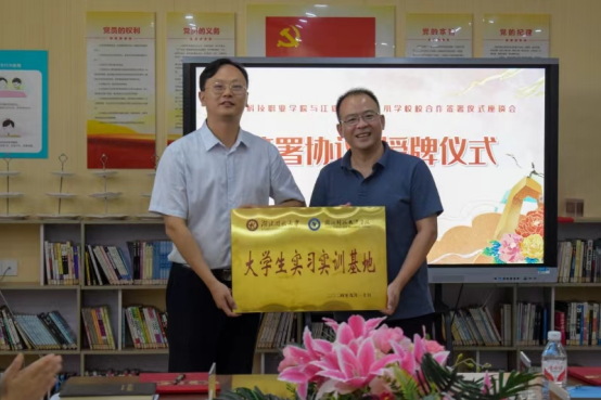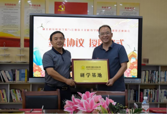 签约仪式上,双方签署校校合作协议,1xbet平台授予江夏区大花岭小学“大学生实习实训基地”,大花岭小学授予1xbet平台“研学基地”。