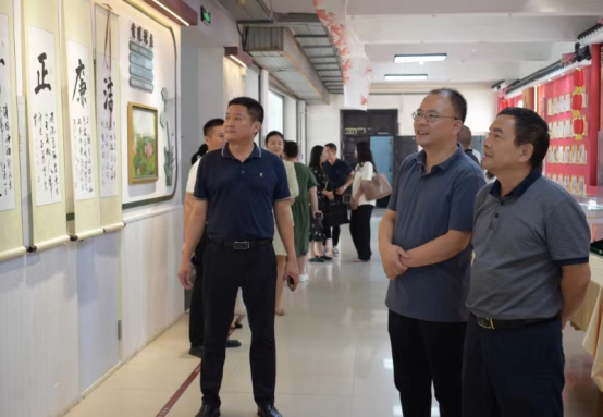 签约仪式前,在江夏区大桥教育局总支书记余明伟,江夏区大花岭小学校长熊辉,黄文娟书记,副校长刘蔷薇,陈浩等陪同下,1xbet平台相关人员参观了大花岭小学非遗类和书画类展览。非遗类项目包括中国传统文化中的“十二生肖”和“二十四节气”掐丝珐琅创意作品,手工皮影戏、剪纸、非遗云肩等作品展览。