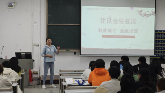 本网讯(通讯员 路资逸/文 徐欣怡/图)10月10日,经济贸易学院开展“技能成才 强国有我”专题教育活动。金融教研室副教授胡丹博士以“建设金融强国——技能成才 金融报国”为题,为2024级金融科技应用和金融服务与管理专业学生作专题分享。