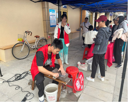 10月18日,机电工程学院青年志愿者协会与结对的雄庄社区开展“便民服务进社区 互助便利惠万家”活动。一场聚焦居民日常需求的便民服务活动正在有条不紊地开展中,志愿者们运用所学专长,精心组织起小家电维修、刀具锋利化处理、衣物缝制修补、手机贴膜及理发等服务项目,为居民们送去便利。