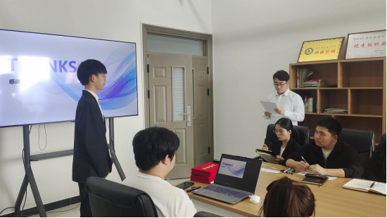 现场答辩,展示风采。11月4日,软件工程学院举行复赛,复赛设置了现场答辩和模拟面试两个环节。在现场答辩环节,学生模拟求职者,从自我介绍、岗位(职业)理解、择业意图、实践路径、经验成果分享5个模块进行介绍,畅想对未来职场的期许向往。选手徐昕怡深情说道,“我生于农村、长于农村,在我的家乡,由于信息比较闭塞,有很多的农产品滞销。因此,我的职业目标是回乡做一名农产品直播,争取帮助到我的家乡,宣传好我的家乡,帮助村民们把农产品卖出去。”有的学生则紧密结合专业,希望能从事与专业相关的工作,比如软件工程师、区块链工程师。学生们用调研的数据、丰富的实践履历、亲身的项目经历现身说法,展示竞聘的优势与实力,充分展现了学子们奋发进取、自信阳光的精神风貌。