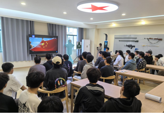 会上,学生观看了庆祝人民空军成立75周年主题宣传片《为你》。宣传片讲述了在党的领导下人民空军孕育、发展、壮大进程中的历史瞬间。宣传片播放结束后大家纷纷感叹中国空军发展之迅速,武器装备之先进。