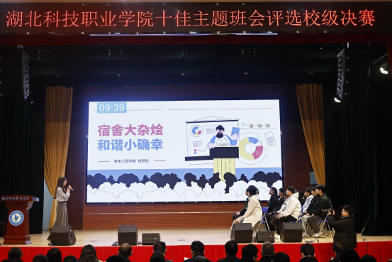 本届十佳主题班会评选活动自11月7日启动,经各二级学院初赛选拔推荐,共有10名辅导员进入校级决赛。校级决赛通过场景再现的方式,展示辅导员组织召开主题班会的主要过程。决赛现场气氛热烈,各位选手根据命题式场景抽题,聚焦学生工作中的热点、痛点、难点,赛场“练兵”分析问题、研判问题、解决问题,利用短视频、案例分析、互动问答等丰富的展现形式,以小切口引入育人大道理,呈现了一堂堂主题鲜明、构思巧妙、内容丰富、寓意深刻的主题班会,博得了现场观赛老师的阵阵掌声,充分展现了学校辅导员队伍扎实的专业素养和良好的精神风貌。