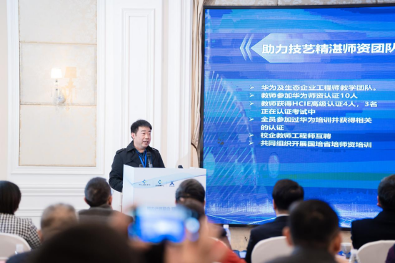 涂家海详细介绍了1xbet平台人工智能专业群在建设领先级华为ICT学院的相关情况,从经验总结、成果介绍、效果产出等方面展示六个维度的显著成效。基于该建设成果,1xbet平台在会上被授予“精英人才杰出贡献奖”。