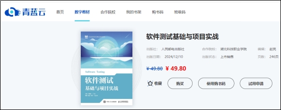 本网讯(通讯员 王智超 文/图)12月10日,软件工程学院首部数字化教材《软件测试基础与项目实战》获得电子出版物号并在人民邮电出版社青蓝云数字教材平台正式上线,该教材将在我院软件技术专业开设的专业核心课程“软件测试”课程教学中使用。该数字化教材由我院软件测试教学团队在原有自编纸质教材基础上联合企业和兄弟院校历时一年多时间共同开发完成。