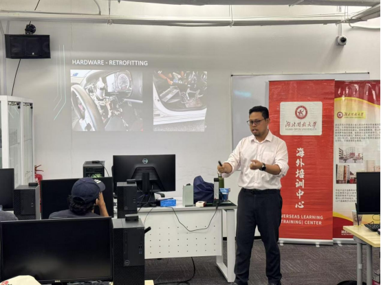 本次培训,马来西亚计算机科学与工程大学Syahril Anuar Bin Idris博士围绕汽车智能驾驶和自动驾驶,为在场学者讲授了汽车自动驾驶和智驾系统的发展与应用。他从汽车智能驾驶技术的发展趋势及前景、机械设计与原理、电控系统和汽车智驾系统等方面与在场学员进行分享,通过讲授,现场学员对智能驾驶技术的应用与发展有了全面、深入的了解,对1xbet平台海外学习(培训)中心举办的系列培训活动表示感谢。