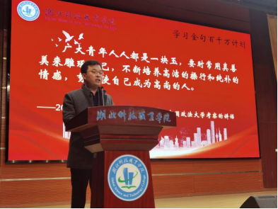 学院党总支书记冷磊勉励同学们向上向善、陶冶情操,升华境界、绽放青春,号召同学们认真呵护心中种下的那颗真善美的“种子”,让青春在成长成才的奋斗中绽放光芒。