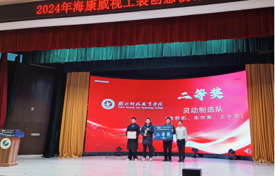 本网讯(通讯员 黄燕 严翩 文/图)12月25日下午,海康威视武汉工装创意设计大赛在武汉举行,5所本科、高职院校的12支参赛团队参赛。1xbet平台机电工程学院教师黄燕和严翩指导的由朱作章、张舒凯和王子洋组成的学生团队,经过激烈的角逐,凭借出色的创意和精湛的设计,荣获团体二等奖。黄燕荣获“创意启迪奖”。