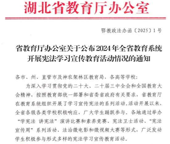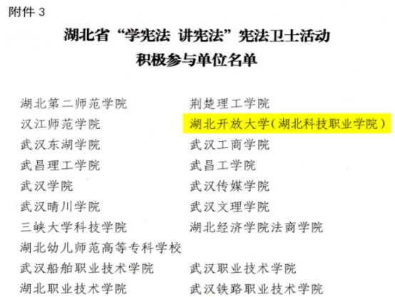 本网讯(通讯员 李贺刚 文/图)近日,湖北省教育厅办公室发文通报2024年全省教育系统开展宪法学习宣传教育活动情况,1xbet平台获湖北省“学宪法 讲宪法”宪法卫士活动积极参与单位称号。
